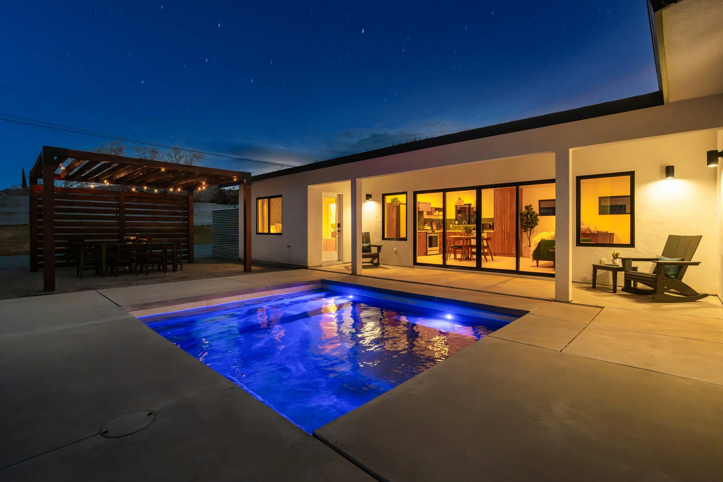 Single family home developed as a short-term rental investment property located 5 miles from Joshua Tree National Park. Walkable to shops and dining in Downtown Joshua Tree.